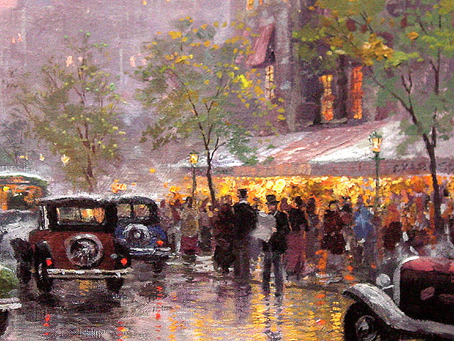 Boulevard Lights, Paris ("City Impressions I") The first release in Thom's Studio Impressions Collection and City Impressions series. This new collection is an expression of Thom's passion for color and the way natural light affects the subject. Thom has a great affinity for the 1930's and 1940's, notice the vintage cars.